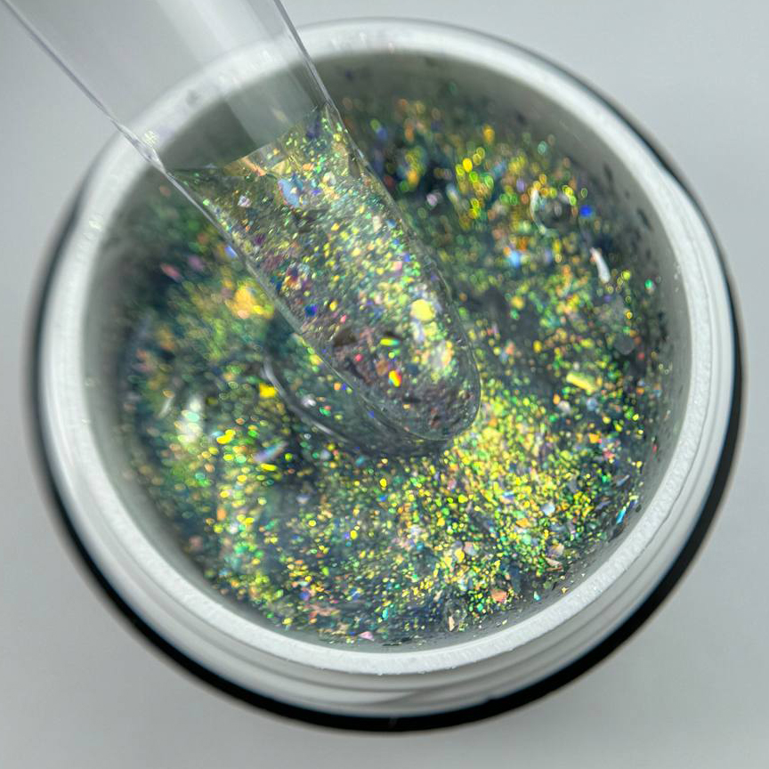 Gel constructor con escamas yukki camaleon brillante.